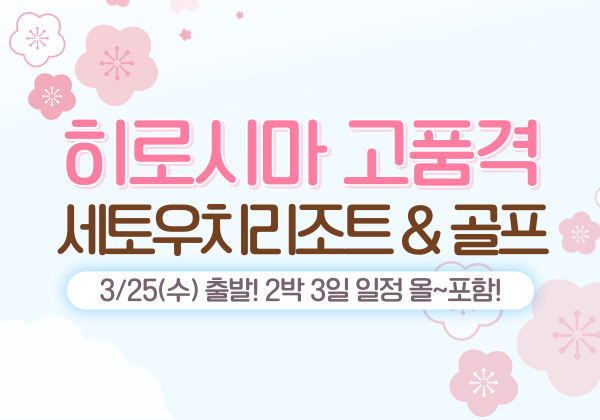 [벚꽃특가! 3/25(수) 출발 ] 일본 히로시마 고품격 세토우치리조트&골프 2박3일