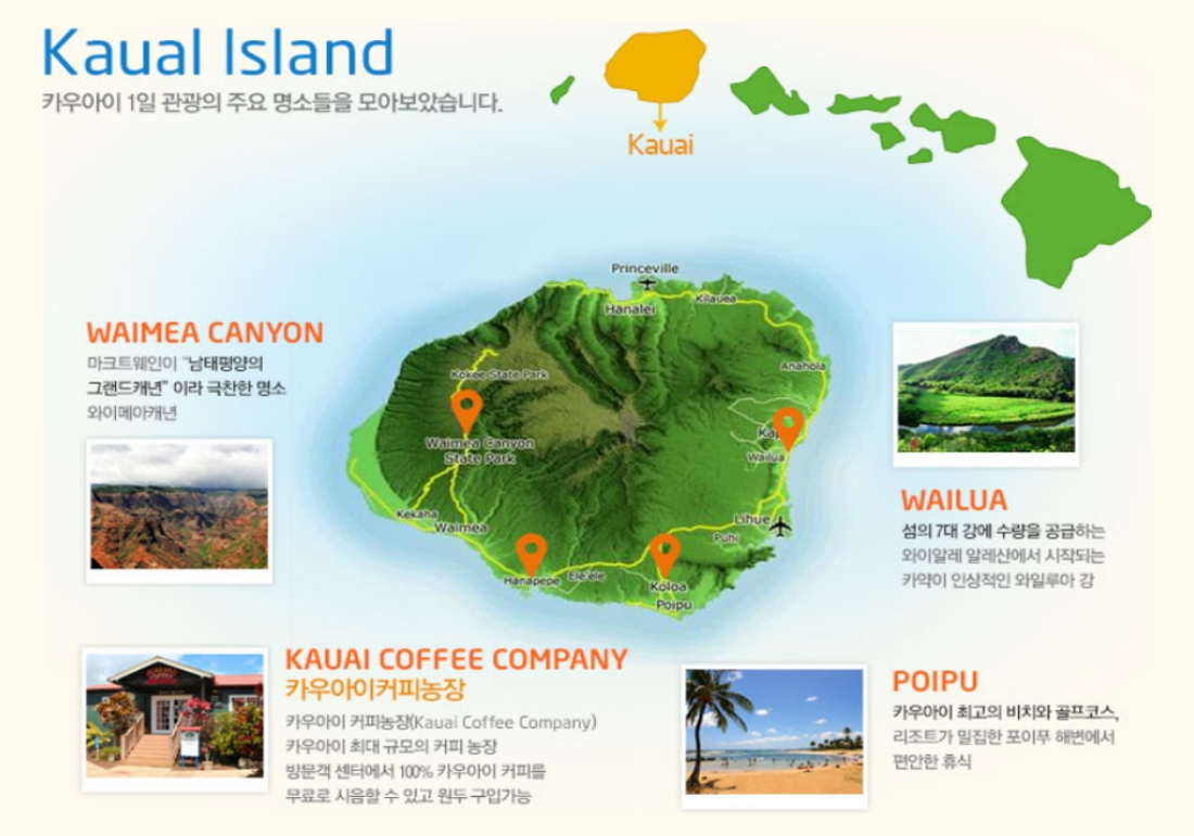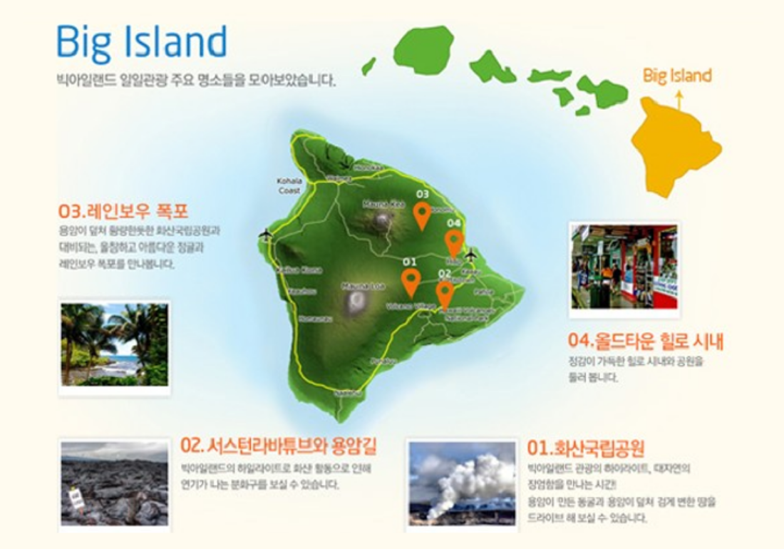● 하와이의 4개의 섬 - 오하우, 카우아이, 마우이, 빅아일랜드(힐로, 코나) 모두를 둘러보는